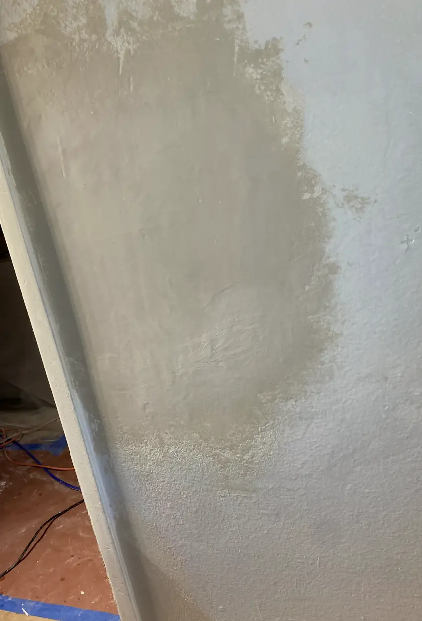 The texture was rough where someone had tried to fix cracks. They did a smooth patch, feathered the edges, and kept dust contained throughout.