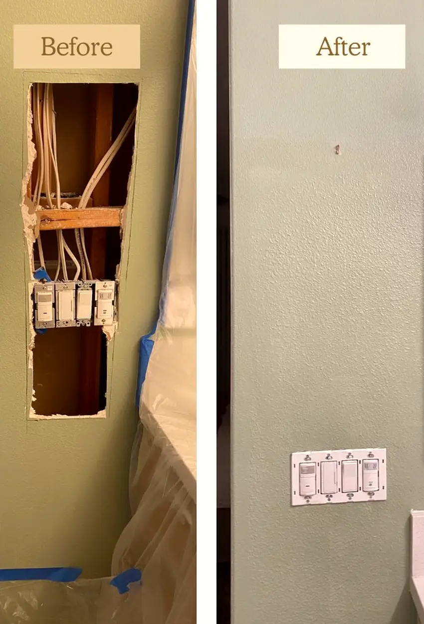 I noticed the paint mismatch after a prior fix left the wall blotchy. He did drywall and paint together, didn’t rush drying, and now the surface doesn’t draw any attention.
