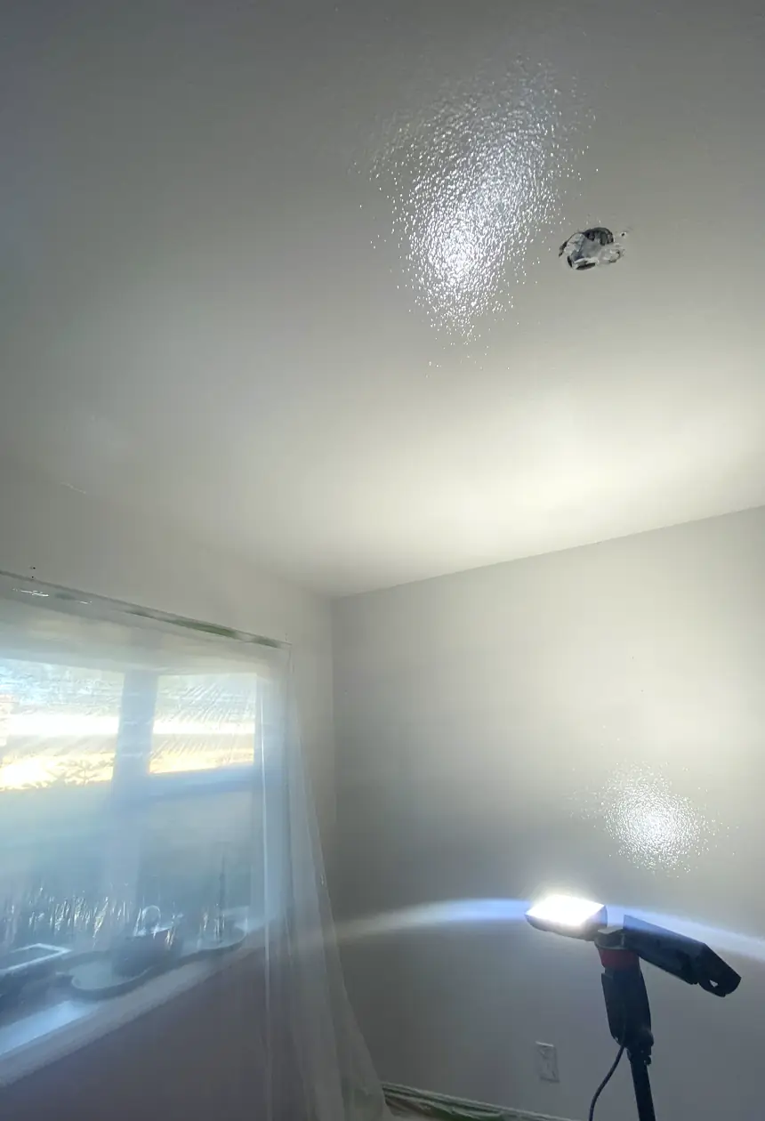 We replicate the wall’s texture and apply paint blends perfectly with no flashing or color shifts. Poor blending shows up as shiny or dull patches, betraying the repair.