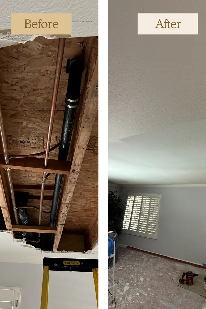 A soft spot in the drywall looked like it would worsen; their sheetrock repair was detailed, and they didn’t rush drying so the fix settled perfectly with an even texture.