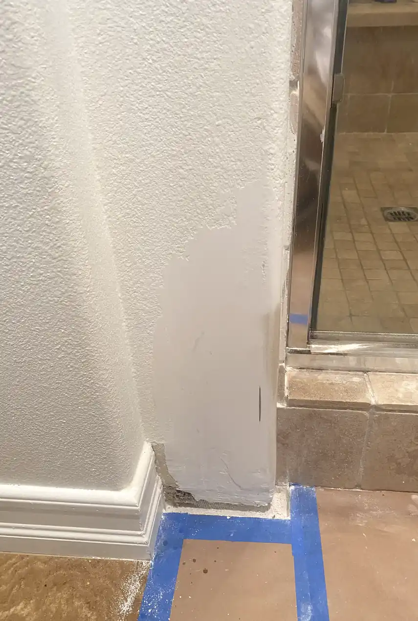 They fixed a cracked edge near the light switch. I thought it was just a simple patch, but they ended up doing more prep work for texture match. Kept dust under control and didn’t rush drying at all.