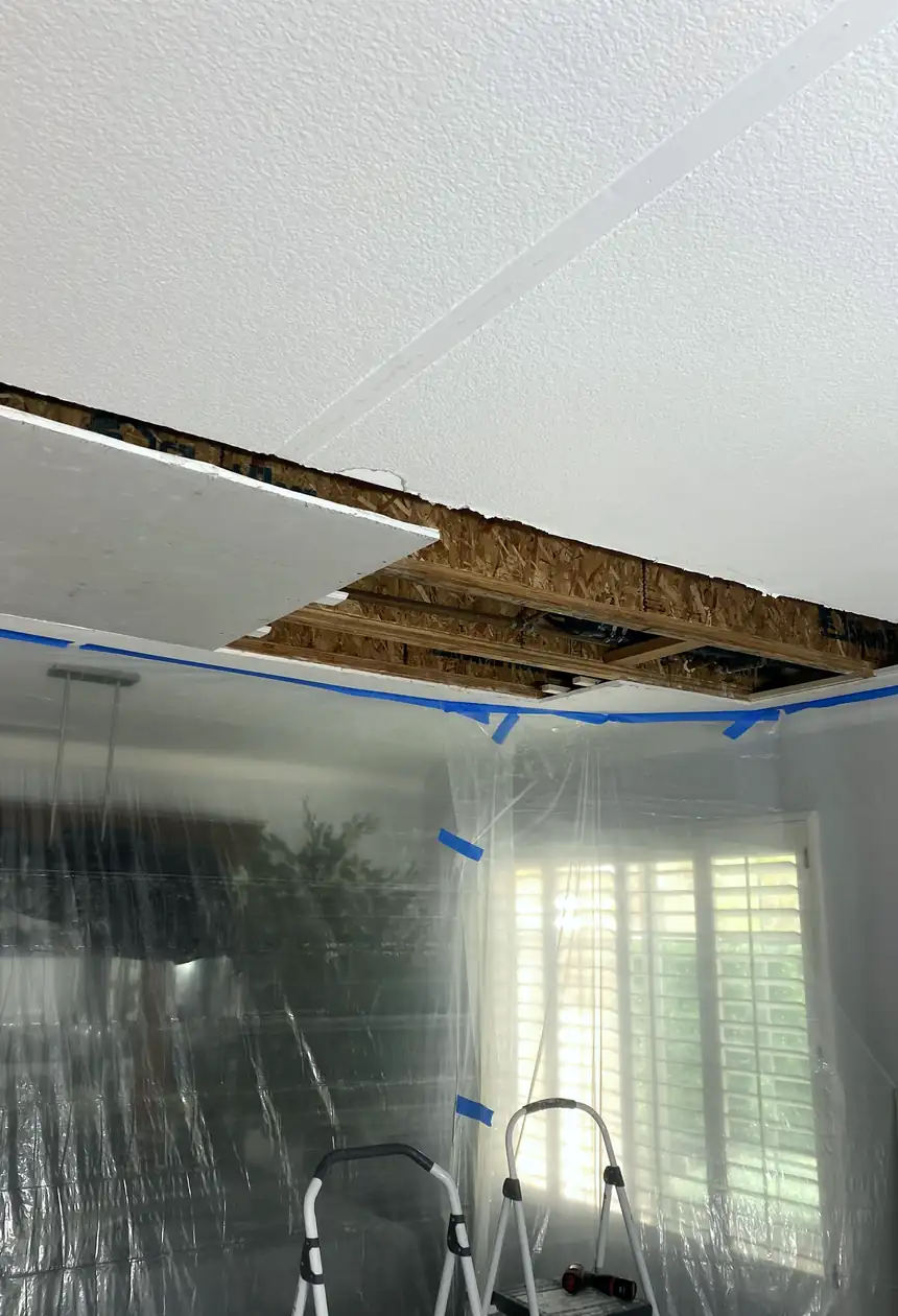The sheetrock repair took more time than I thought—the patch near a cracked seam sank a bit next day but they came back for a second pass without rushing drying.