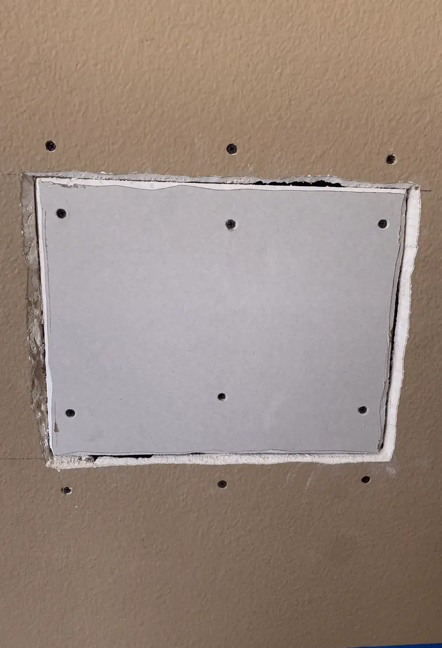 A perfectly sized patch is fitted into the hole and anchored firmly. DIY attempts often leave loose patches that sag or warp, causing shadow lines where the hole was.