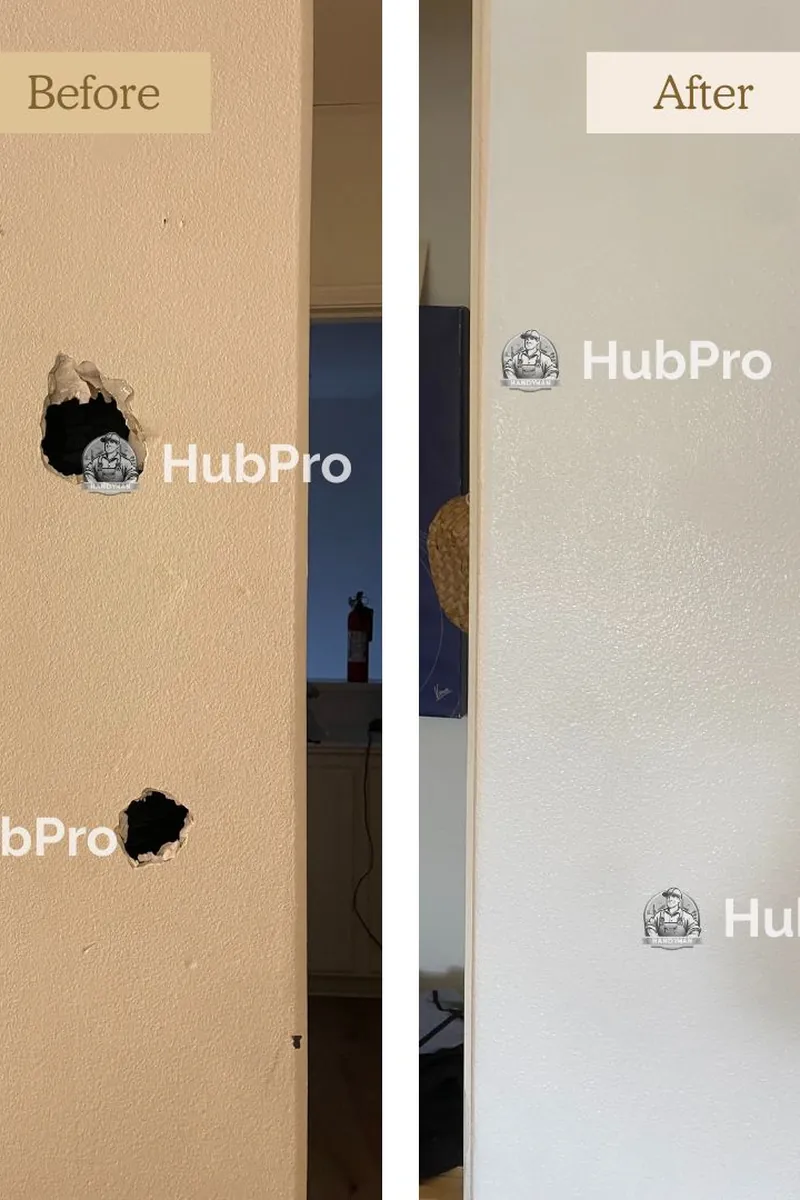 My door had a nasty 3-inch hole. Tried a DIY patch but the edges cracked and paint peeled soon after. The handyman showed up on time, did a full sheetrock repair, sanding and finishing with a smooth texture. Next day, it looked even better and no callbacks needed.