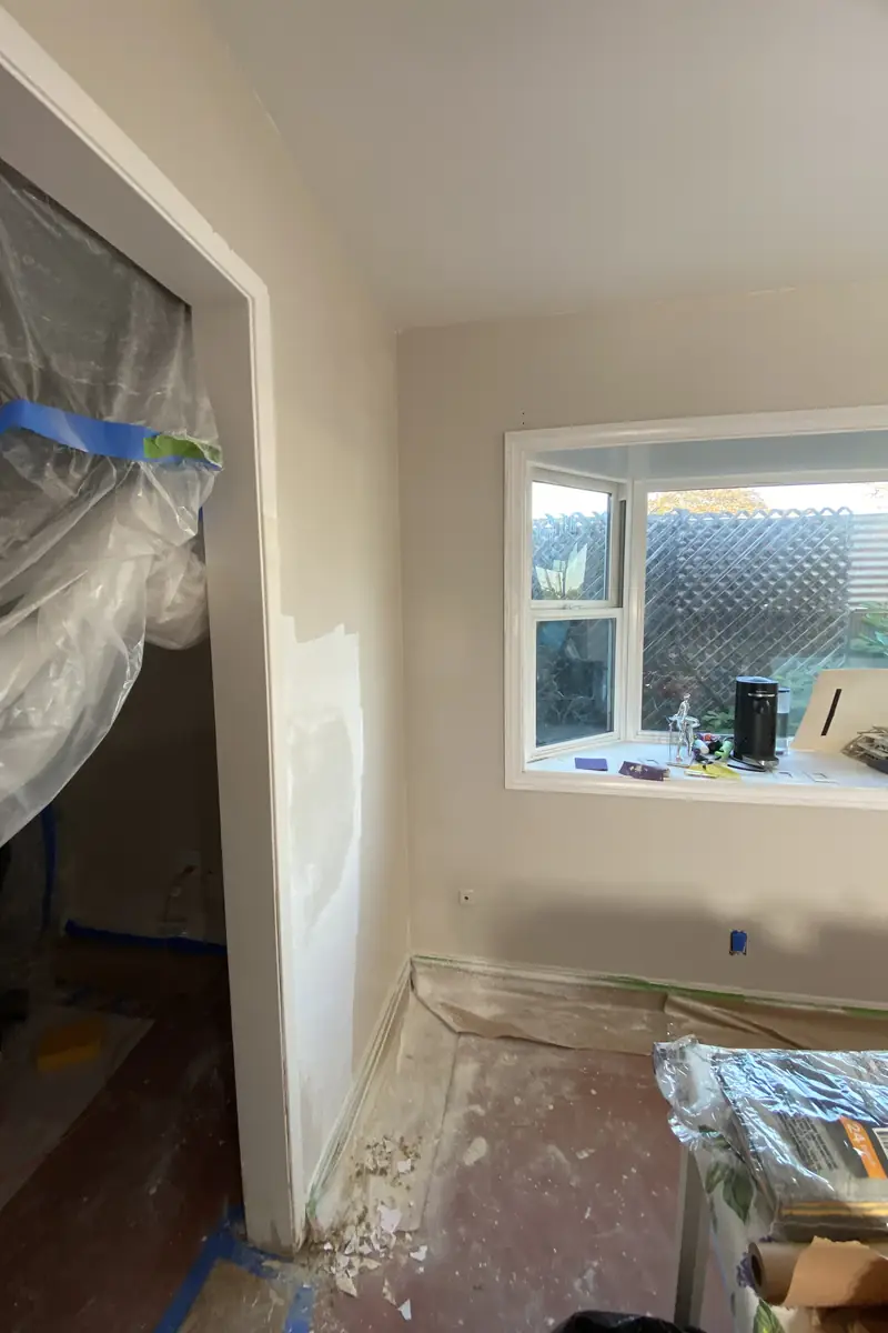 The door hole left a jagged edge and I tried patching myself, but the paint peeling started next day. They redid the drywall and paint; the wall now looks steady with a smooth finish.