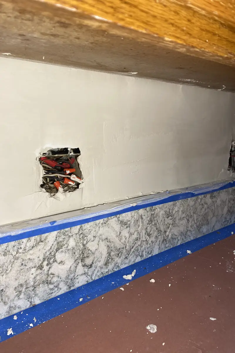 Cuts made to run new plumbing or electrical wires leave jagged openings with torn paper surfaces. These access holes rarely align perfectly with surrounding textures, making smooth blending a challenge.