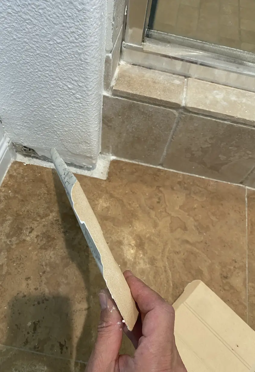 Using fine sandpaper, we feather the edges to blend patch and wall, controlling dust with our clean workspace. Skipping this results in visible raised edges or ghosting when sunlight hits the wall.