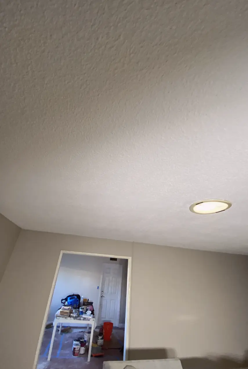 Paint color was totally off after a previous repair. This was more than simple sheetrock repair—they matched the tone and finished it with a proper finish.