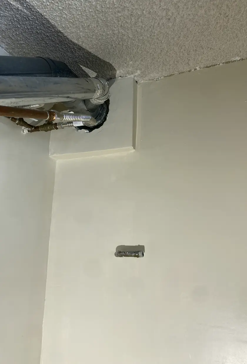 Sometimes narrow, rough openings cut into drywall to reach plumbing or electrical lines leave ragged edges and exposed layers. These patches rarely align perfectly with the original wall texture, making naive fixes obvious.