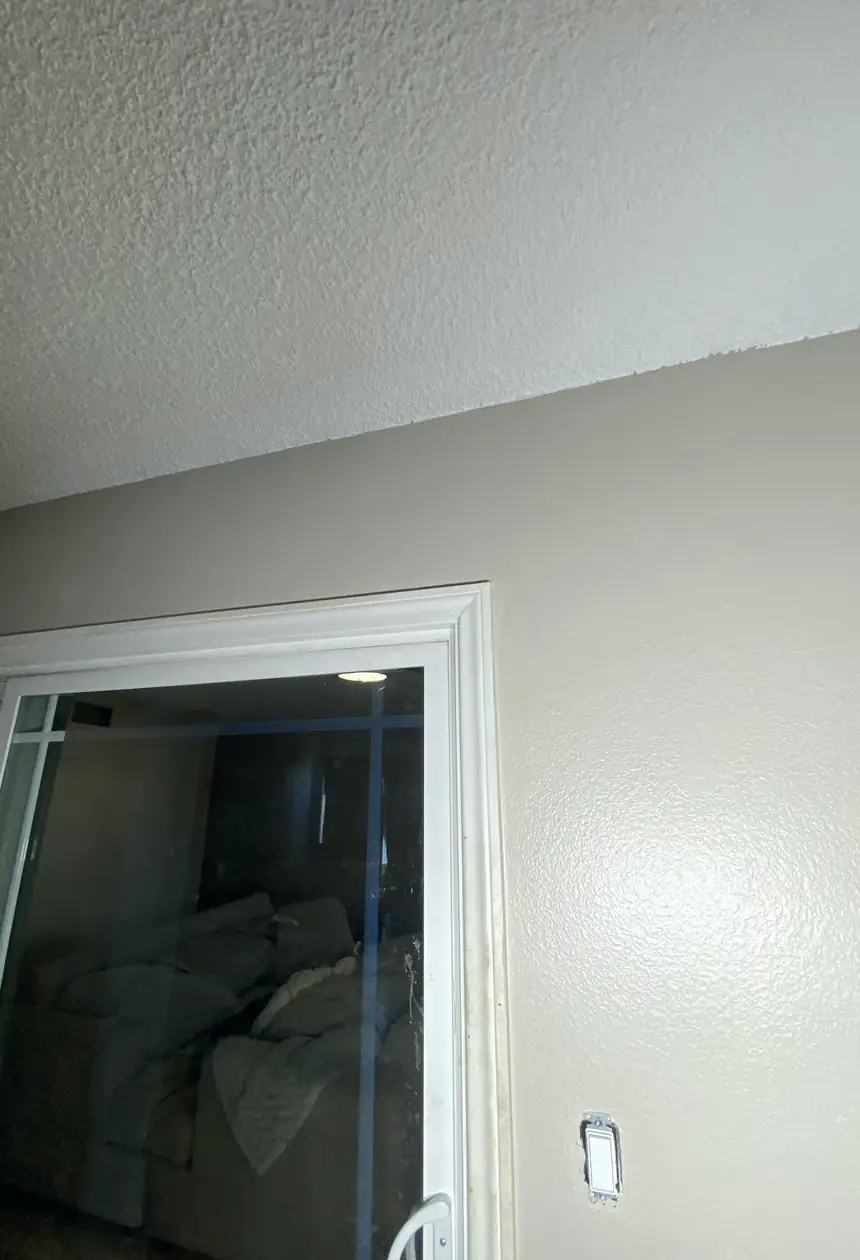 Bad DIY patch left a rough texture that stood out under light. Their drywall repair services included careful sanding and blending so the wall no longer draws attention.