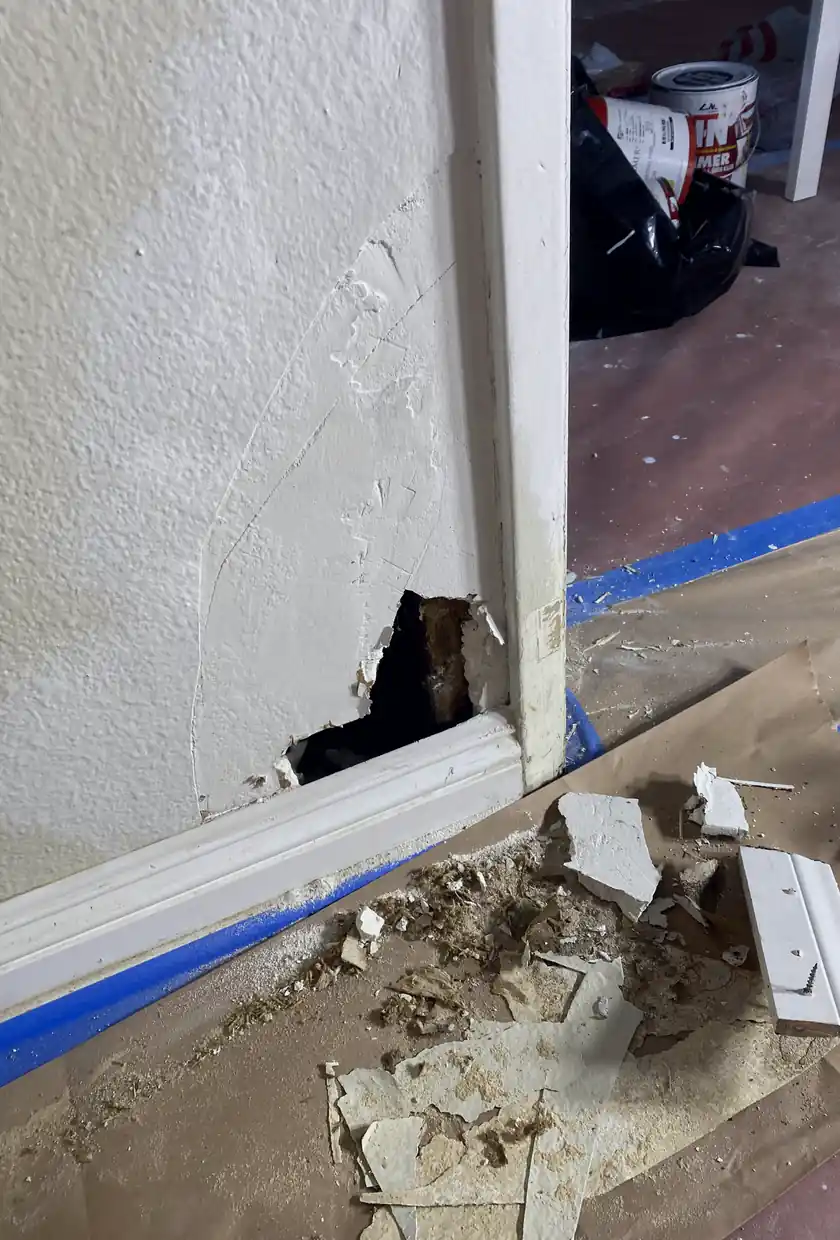 Had a big hole near my door that I tried patching myself, but it didn’t hold up. They did a full sheetrock repair, sanded it smooth, and you wouldn’t guess it was ever there.