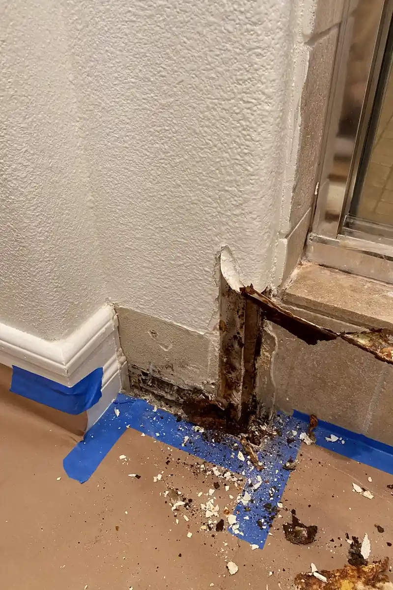 Settling or slight shifts cause hairline cracks along corners or seams. Over time, these fractures widen unevenly, causing fragile breaks and flaky drywall textures to develop.