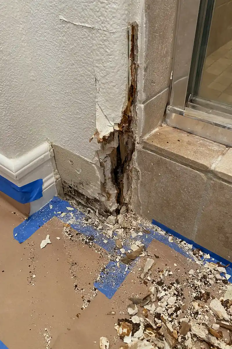 Subtle shifting in framing or settling leads to hairline cracks at corners and joints, which can widen over time, compromising surface integrity and texture.