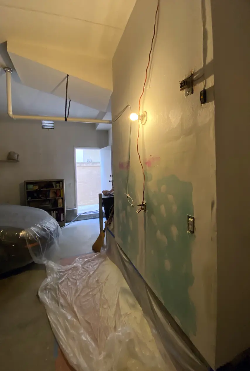 The patch job from last year had bubbling paint and uneven grain. They did drywall and paint that finally looks right, and dust was controlled during sanding.