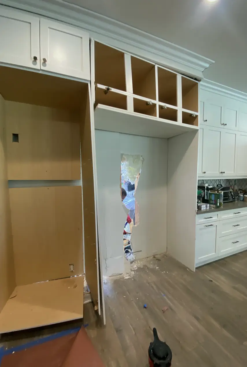 We first cut out loose drywall around the impact, stabilizing edges to prevent future cracking. Rushed repairs miss this, causing unstable patches and visible gaps under shifting light.