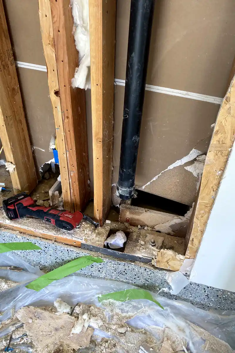 Plumbing or electrical work may require cutting into drywall, resulting in jagged edges and patches that rarely align perfectly with the surrounding wall, highlighting the initial disruption.