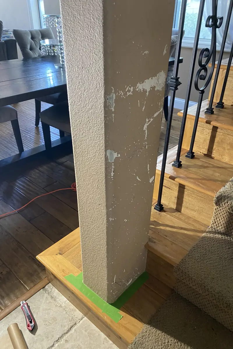 Previous drywall installation left uneven texture and bad seams by the stairwell. This team patiently blotted, sanded, and corrected the finish, avoiding any callbacks.