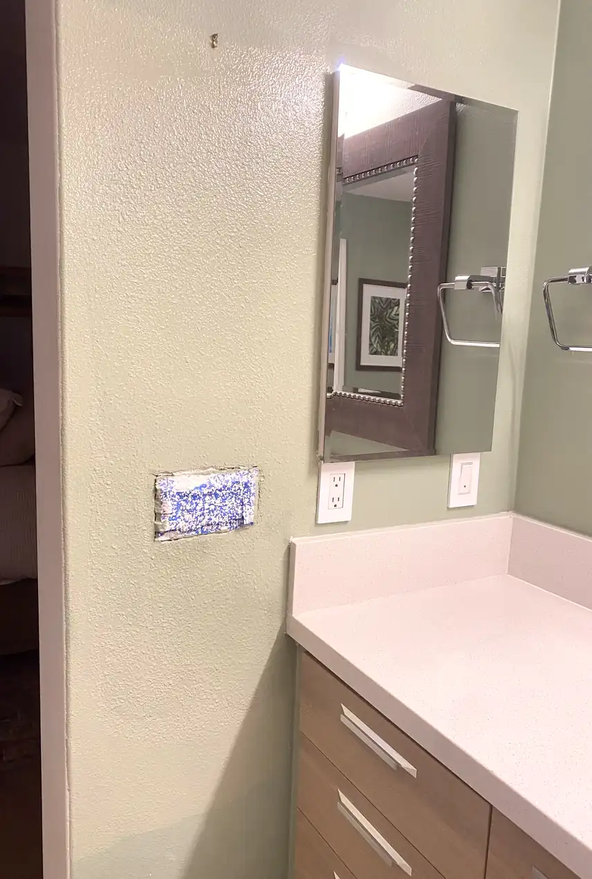 Even if you paint over a patch, the texture or edges might not match the old wall, especially under side lighting that highlights every imperfection. The patch can appear as a shadow or outline. To fix this properly, the texture must be matched and feathered using the right technique before painting to blend seamlessly with surrounding areas.