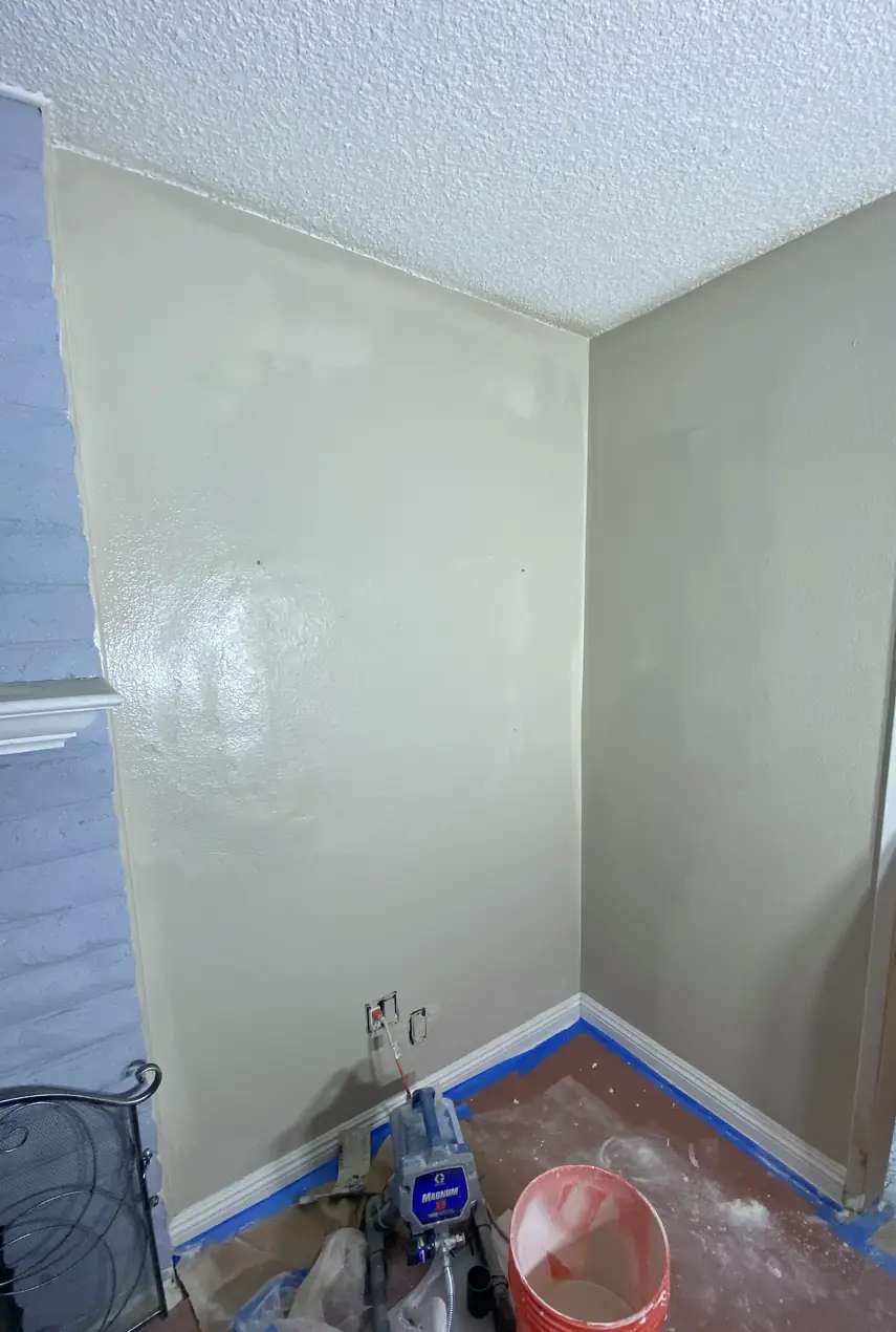 Soft drywall near an old pipe leak made the patch sink after a day. They came back for a second pass, controlled dust well, and the surface looks stable now.