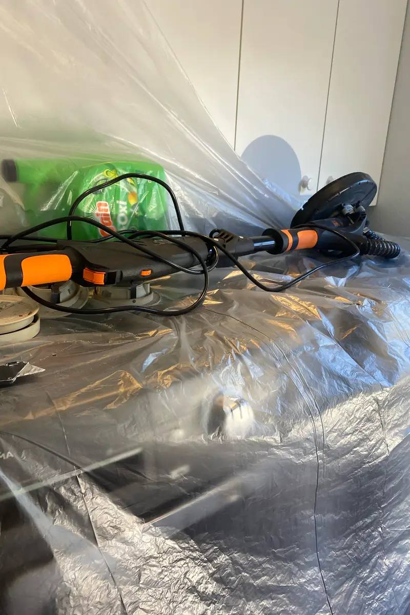 After drying, we sand carefully with gradual passes to feather edges into the surrounding wall, controlling dust with professional gear. Over-sanding or skipping feathering risks visible seams under light angles.